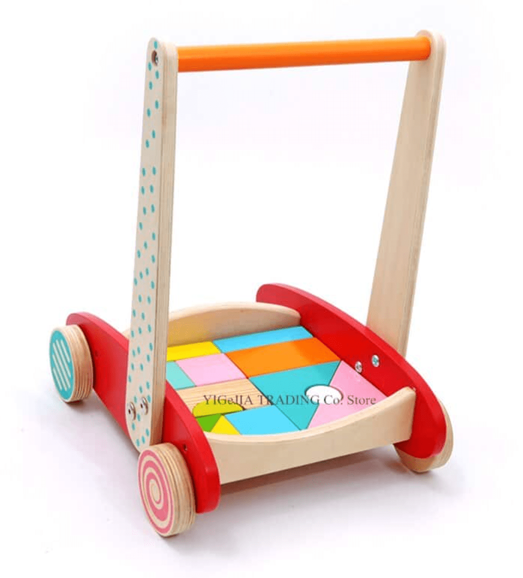 Ce chariot de marche en bois est bien plus qu’un simple pousseur : c’est un véritable compagnon d’apprentissage pour les tout-petits. Conçu selon les principes Montessori, il soutient les premiers pas tout en offrant une activité ludique et éducative avec ses blocs de construction colorés.