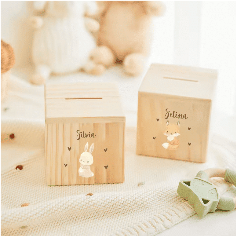 Conçue en matériaux naturels et résistants, elle peut être gravée avec un prénom ou un message spécial, ce qui en fait un cadeau unique et mémorable. Idéale pour initier les plus jeunes à l’épargne, cette tirelire allie esthétique et fonctionnalité.